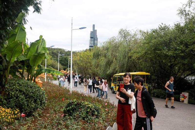 毗邻省博的观山湖公园则是另一番惬意景象。湖面波光粼粼,步道上游客或漫步赏景,或相互拍照打卡。“先去省博感受了文化,再到公园放松下身心,感觉观山湖的一天既有内涵又惬意。”本地市民黄女士带着外地亲友打卡,直言观山湖的假日氛围“越来越浓”。