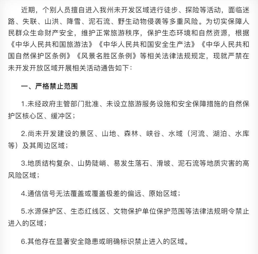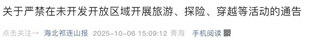 据青海省海北藏族自治州门源回族自治县应急管理局消息,10月5日,门源县公安局接游客报警,称有游客从甘肃境内徒步进入门源县老虎沟地区。接警后,公安、应急等部门迅速展开搜救。初步核实有百余名徒步爱好者,从甘肃省肃南县皇城镇百花掌区域徒步前往老虎沟地区。海北州迅速将此情况向甘肃省肃南县通报,加强区域联动,对徒步人员开展双向搜寻和劝返。老虎沟地区平均海拔超过4000米,地形复杂,天气多变,连续降雪,搜救难度较大。截至6日8时,已组织转移137人,目前所有转移人员生命体征稳定。有1名徒步人员因失温和高反死亡。滞留在祁连山冷龙岭区域的18名徒步人员,已于5日就地妥善安置,并于6日进行转移安置。据已转运人员反映,10月2日至10月4日,还有其他徒步人员进入该区域,目前海北州已累计投入搜寻力量300余人、马匹10余匹、两架次中型无人机从肃南边界和门源边界向冷龙岭区域开展地毯式搜寻。10月6日青海省海北藏族自治州应急管理局、文体旅游广电局发布通告近期,个别人员擅自进入海北州未开发区域进行徒步、探险等活动,面临迷路、失联、山洪、降雪、泥石流、野生动物侵袭等多重风险。为切实保障人民群众生命财产安全,维护正常旅游秩序,保护生态环境和自然资源,根据相关法律法规规定,通告严禁在未开发开放区域开展旅游、探险、穿越等活动。